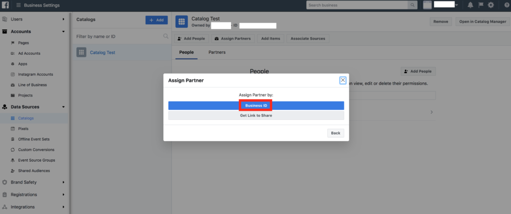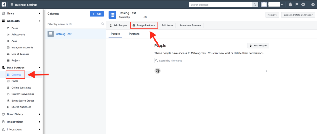 Pasul 2: La secțiunea Surse de date (în meniul din stânga) se accesează categoria Catalog, iar mai apoi se apasă click pe Atribuie un partener (în partea de mijloc)
